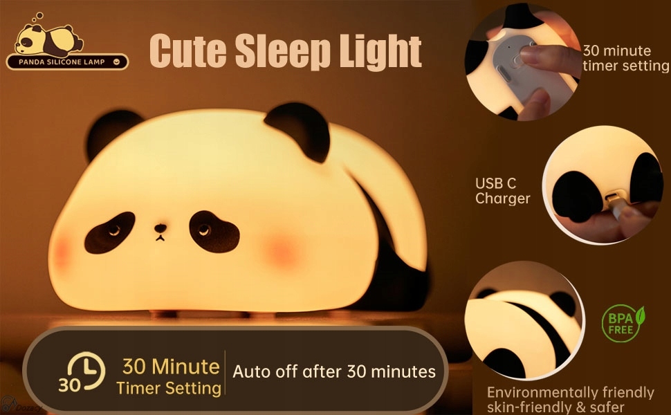 - Очаровательный ночник в виде панды излучает мягкий, успокаивающий свет, который рассеивает тьму, устраняет детские страхи и создает уютную атмосферу для сна. А детская лампочка не будет мерцать, вам не придется беспокоиться о том, что дети повредят глаза.