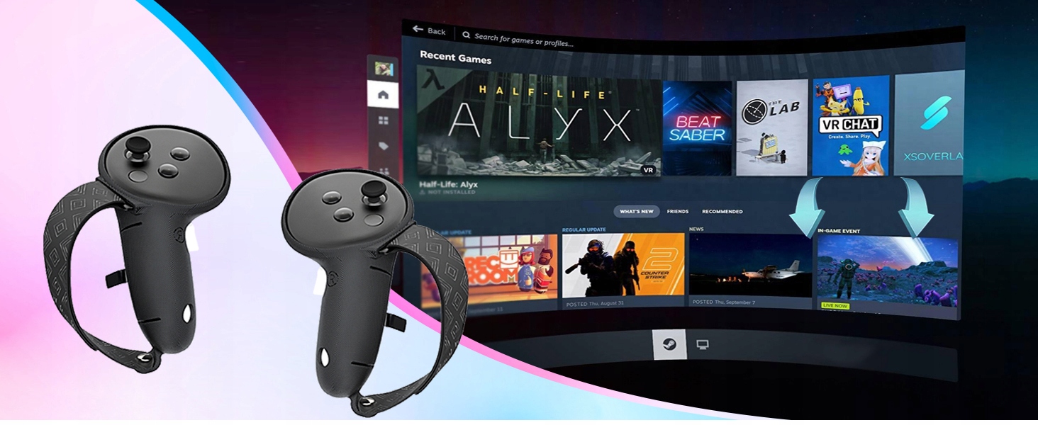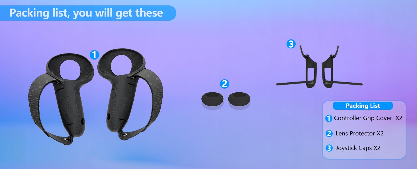 ✅ ✅【Удобная ручка】 Изготовленная из мягкого силикона ручка контроллера Quest 3/3s снижает давление на руку и дискомфорт, позволяя использовать ее дольше без усталости. Его текстурированная поверхность увеличивает трение, предотвращая скольжение, обеспечивая лучший контроль во время игры.