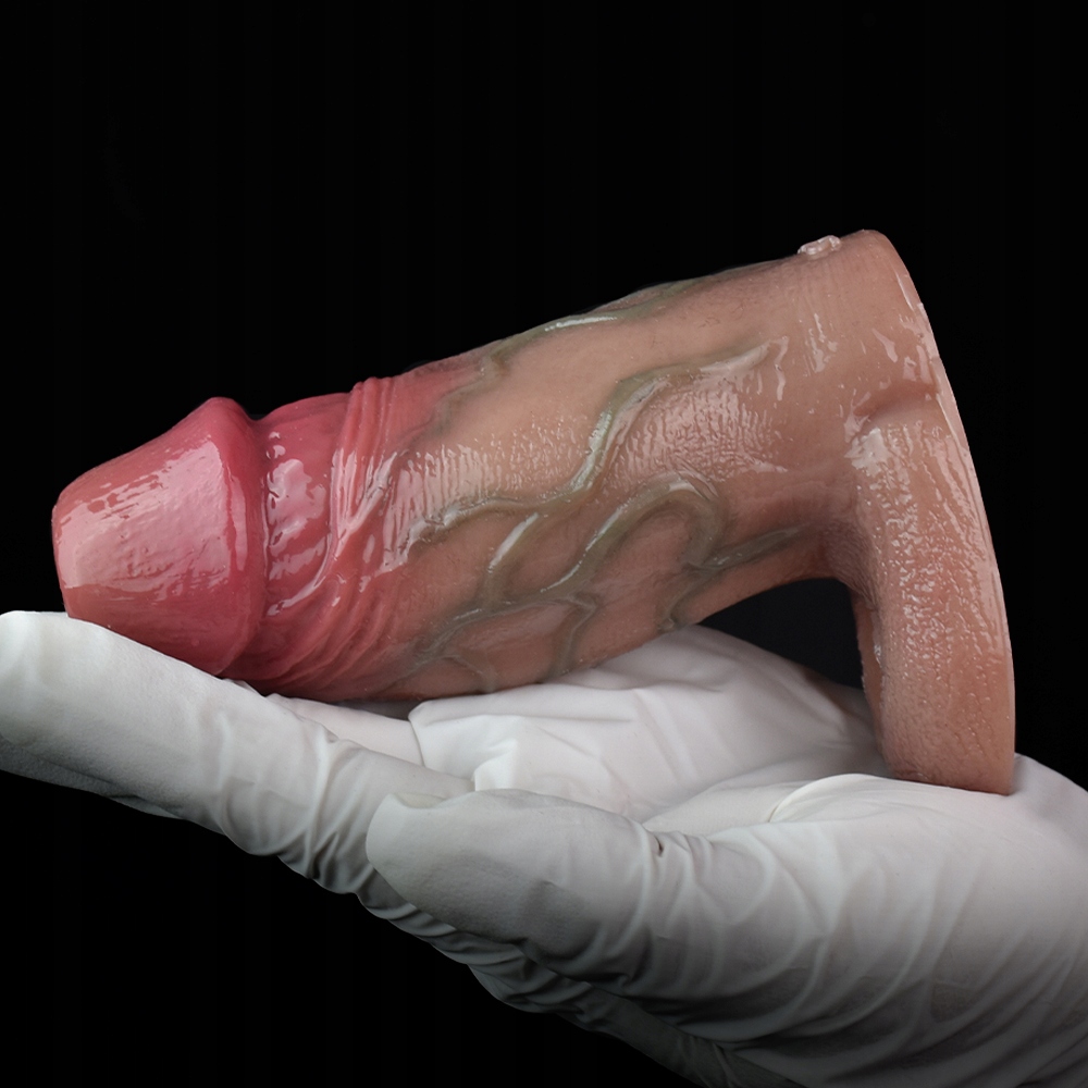 Силиконовый мужской презерватив для полового члена очень большой длины и толщины.