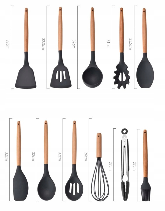 СИЛІКОНОВИЙ ДЕРЕВ’ЯНИЙ КУХОННИЙ ПОСУД ДЛЯ ТЕФЛОНУ НАБІР 12 АКСЕСУАРІВ