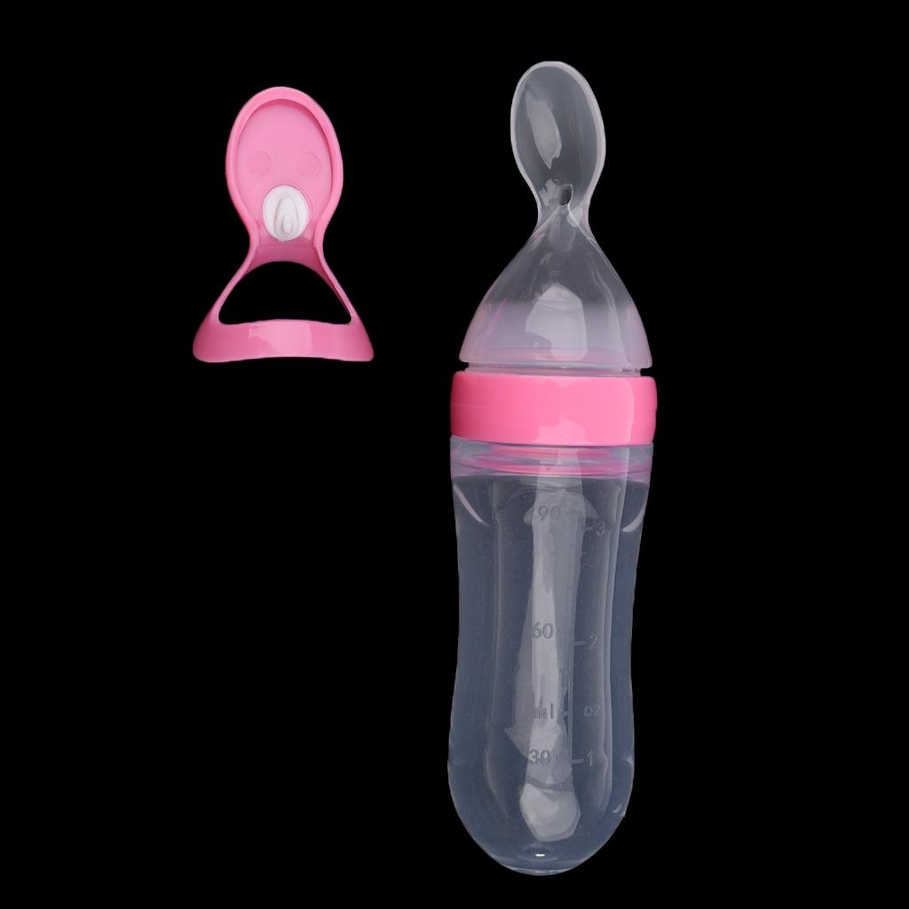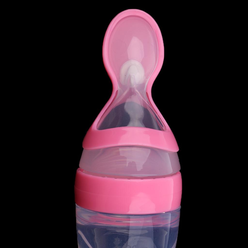 Силиконовый дозатор молока на 90 мл с ложкой, розовый