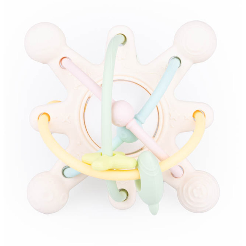 Силиконовая погремушка в стильном галактическом исполнении привнесет немного волшебства в мир вашего малыша. В центральной точке находится гремящий шар, а вокруг него мягкие гибкие веревки, по которым мы можем перемещать движущиеся элементы. Форма игрушки и ее размеры идеально адаптированы для маленьких ручек. Погремушка украшена выступами различной формы, которые принесут облегчение малышу, у которого режутся зубки. GILIGUMS SILICONE RATTLE COSMOS PASTEL