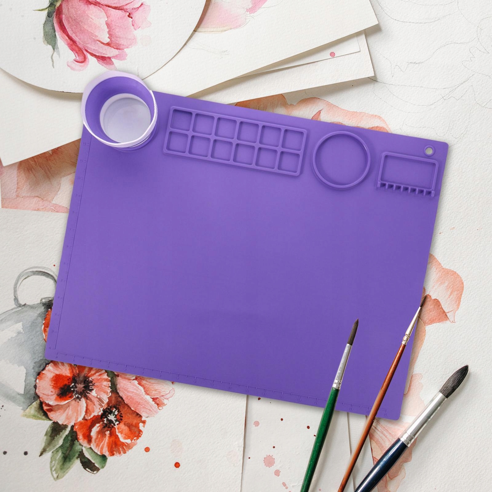 Силиконовый коврик для рисования с чашкой, 19,69 x 15,75 дюймов, силиконовый коврик для творчества, фиолетовый