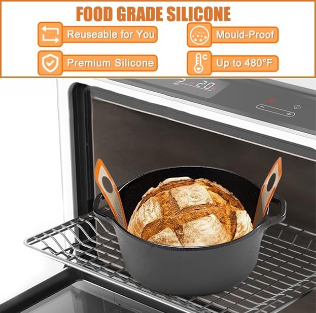 Наш силиконовый шарф хлеба изготовлен из высококачественного платинового силиконового материала, который обеспечивает долговечность и теплостойкость, что обеспечивает длительное сжигание. Наш коврик из силиконового хлеба имеет очень длинные ручки, которые обеспечивают безопасную и удобную сцепление при переносе хлеба из духовки в голландскую духовку. Конец сгоревших рук был улучшен по сравнению с другими тонкими и обычными слайдами для хлеба с отверстиями для голландской печи. Наши силиконовые хлебные коврики безопасны для использования при температуре от 40 ° С до 232 ° С. При нагревании хлебным ковриком тепло будет равномерно распределено, чтобы гарантировать, что пища не будет гореть, так что это идеальный выбор для выпечки хлеба на ремесленном закваске или других рецептах для высокой температуры. Наслаждайтесь преимуществами высококачественных силиконовых материалов, которые выдерживают тепло и сохраняются в течение многих лет. Самостоятельная поверхность нашего силиконового хлеба облегчает удаление хлеба из голландской духовки без чрезмерной смазки или муки. Очистка - это детская игра, просто ополаскивайте под водой или бросьте ее в посудомоечную машину. Больше нет проблем с заблокированным тестом или грязной уборкой. В дополнение к выпечке хлеба, наш универсальный силиконовый шарф также можно использовать для выпечки мяса для печенья с картофелем фри и даже в качестве подставки. Дизайн с длинной ручкой облегчает перенос горячих блюд из духовки на стол. Кроме того, это удовлетворено твоим душевным спокойствием.