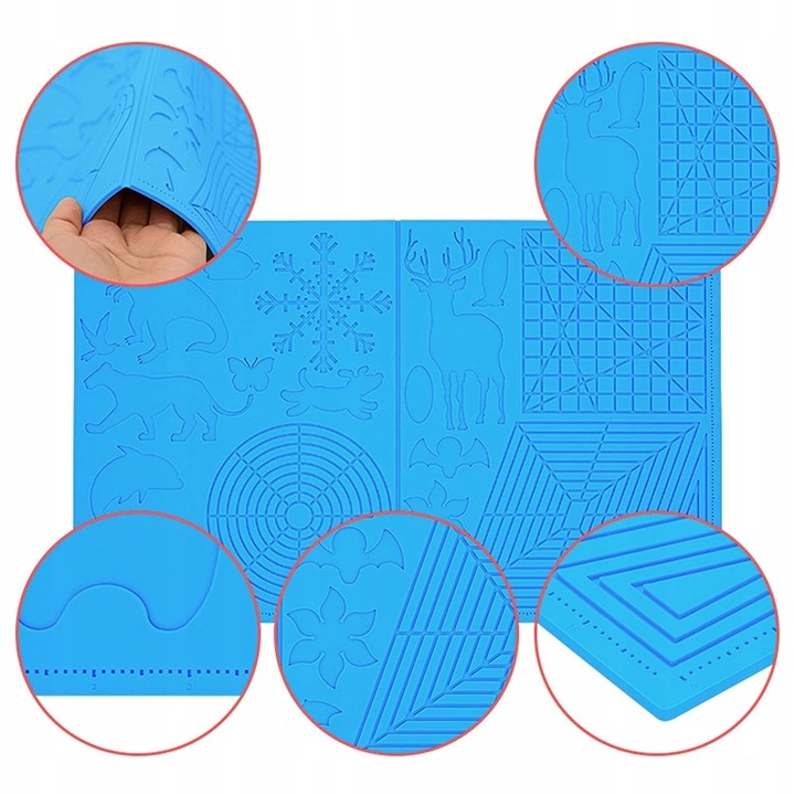 СИЛИКОНОВАЯ ФОРМА ДЛЯ 3D ШАБЛОНОВ РУЧКИ БОЛЬШИЕ УЗОРЫ XL 44×28 СМ СИНЯЯ