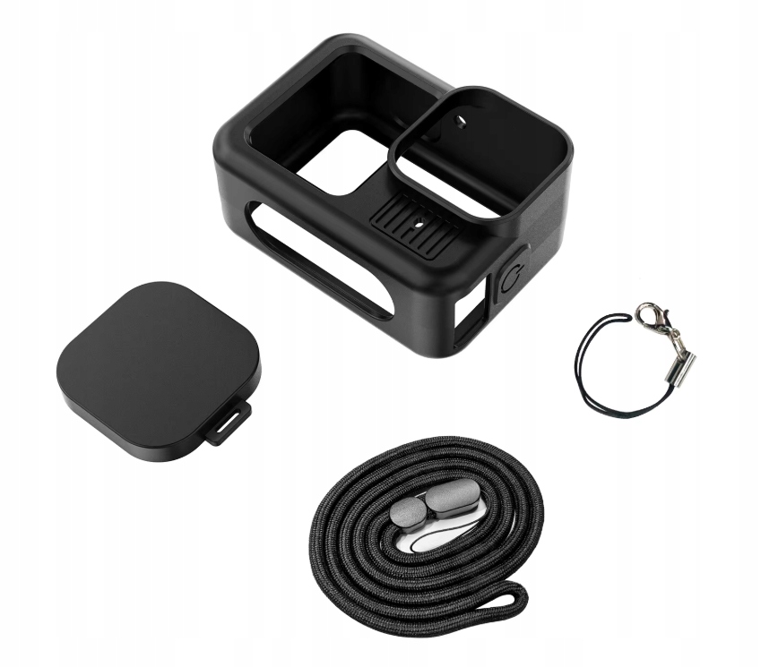 Корпус сделан из очень хорошего качества, приятного для сенсорного материала, который создает не -скользящую поверхность. благодаря этому камера уверенно удерживается, а повод, прикрепленный к набору, обеспечивает дополнительную безопасность.