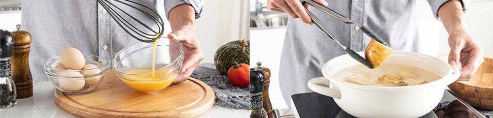 ✅ Легкая, прочная конструкция позволяет эффективно взбивать яичные белки, сливки, смешивать соусы и другие жидкие блюда.