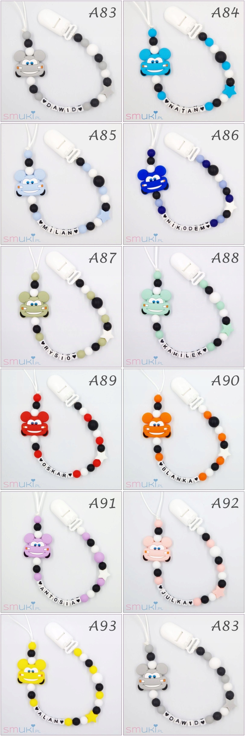 - силиконовые бусины мишка/собака/машина и т. д., размер около 3 см;