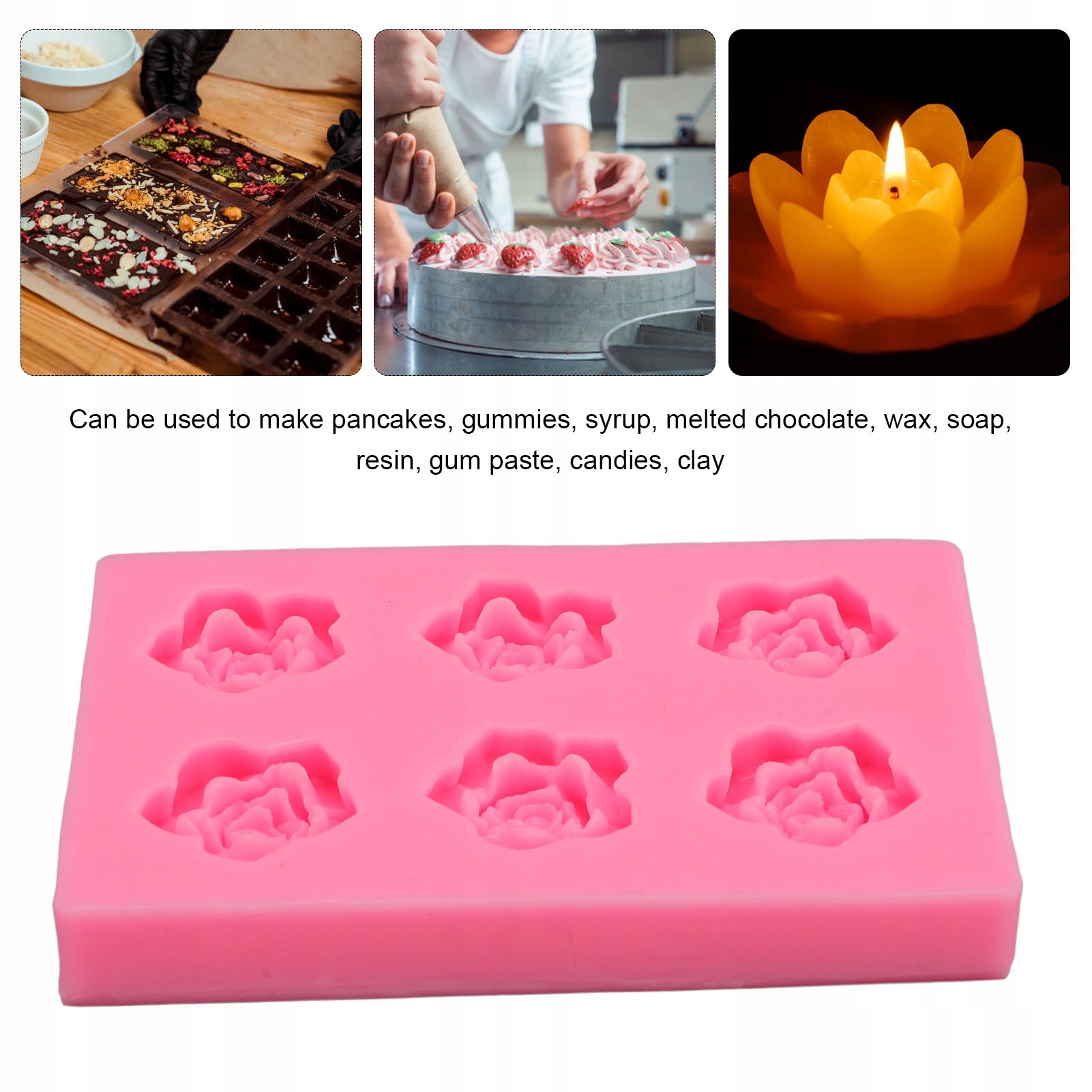 5. [Использование многофункциональной] силиконовой саблеты формы розы подходит для ремесленных проектов, сахарного корабля, украшения теста, резинового, мыла, шоколада, пудинга, глины и т. Д.