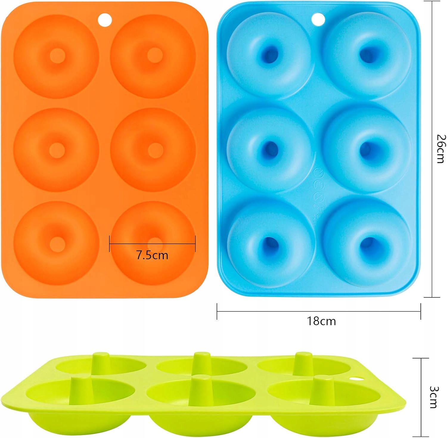 Гибкая конструкция: Если вы хотите вынуть пончики, просто согните форму для выпечки пончиков, не треснув и не повредив ее. способ. Высококачественный материал формы для изготовления пончиков обладает высокой эластичностью, поэтому он просто возвращается к своей первоначальной форме.
