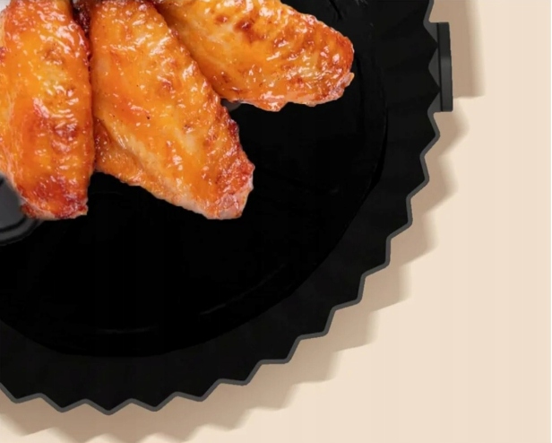 Практичный дизайн - силиконовая внутренняя кастрюля для аэрогриля имеет множество выпуклых линий, которые улучшают циркуляцию тепла, могут полностью разогревать пищу и готовить ее более равномерно. Двусторонний портативный дизайн, удобно размещать и вынимать.