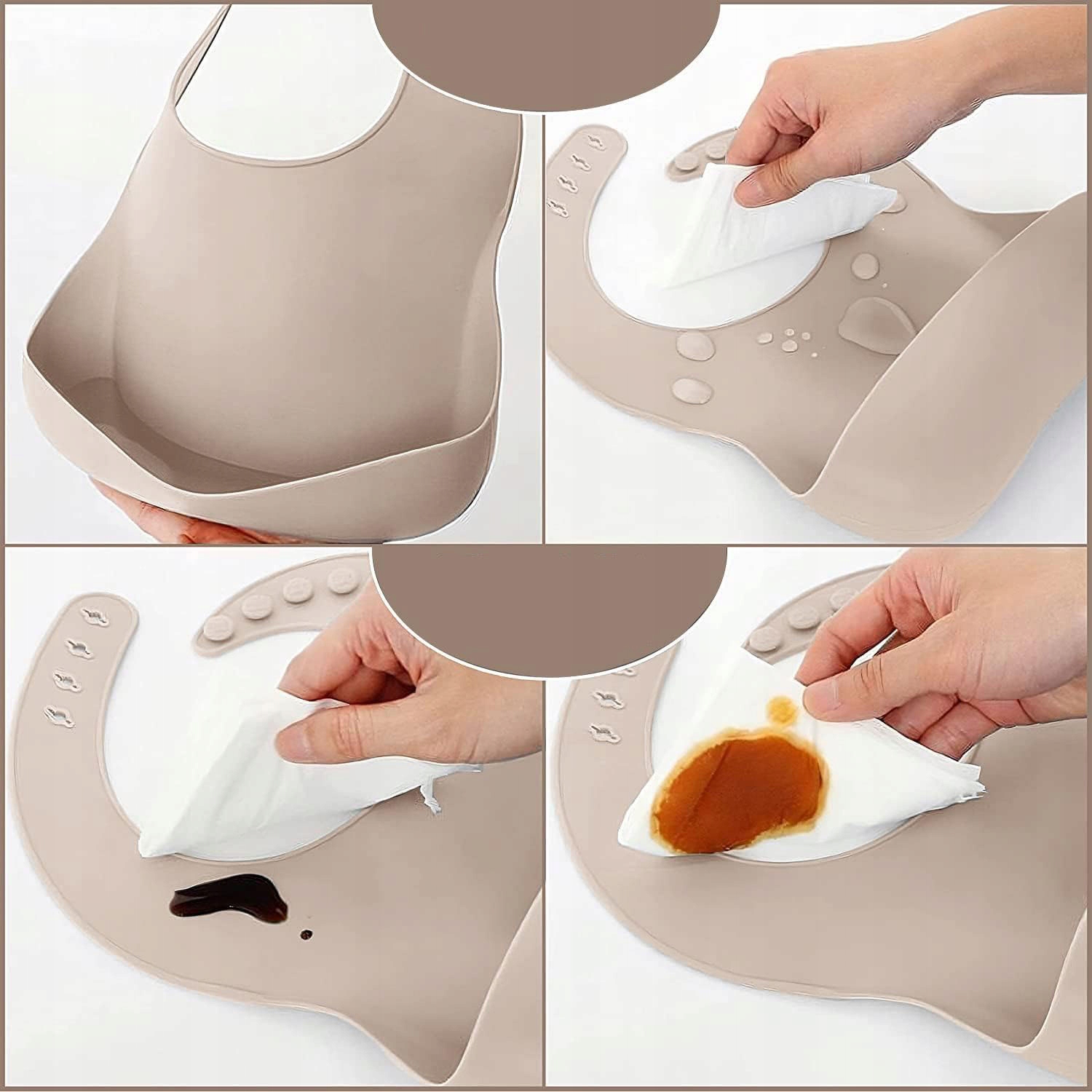 - Силиконовый нагрудник с регулируемой кнопкой и большим поддоном для капель улавливает еду, падающую с вашего ребенка. рот, предотвращая его падение на пол и одежду.