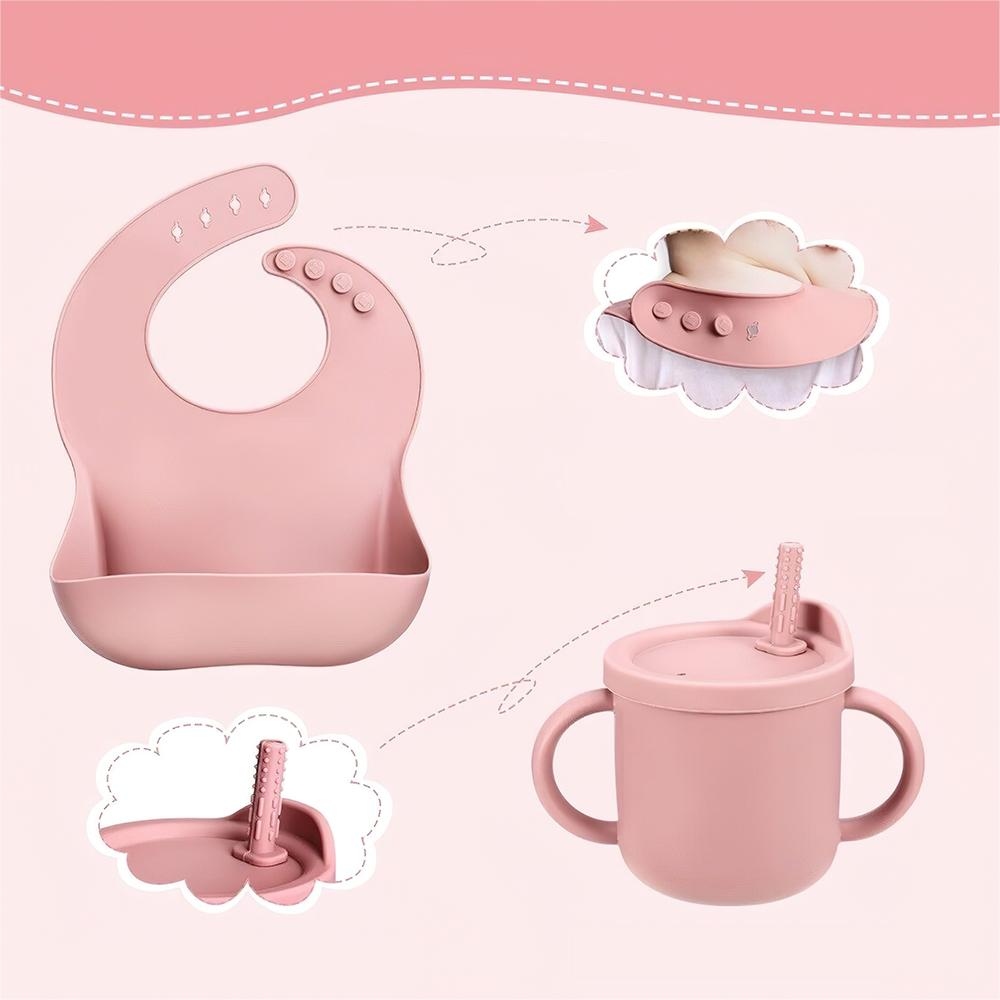 Набор детских столовых приборов из 8 предметов: тарелка, ложка, вилка, миска, нагрудник, чашка для питья ребенка👶