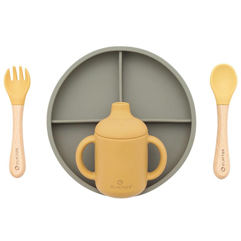 Силіконовий набір Тарілка Чашка Столові прибори 5-елем Зелений OLMITOS
