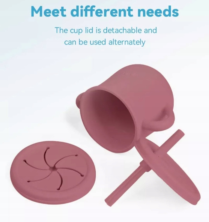 - имеет две крышки — одна с трубочкой для питья, а другая со спиральным отверстием, которое используется, например, для закусок.