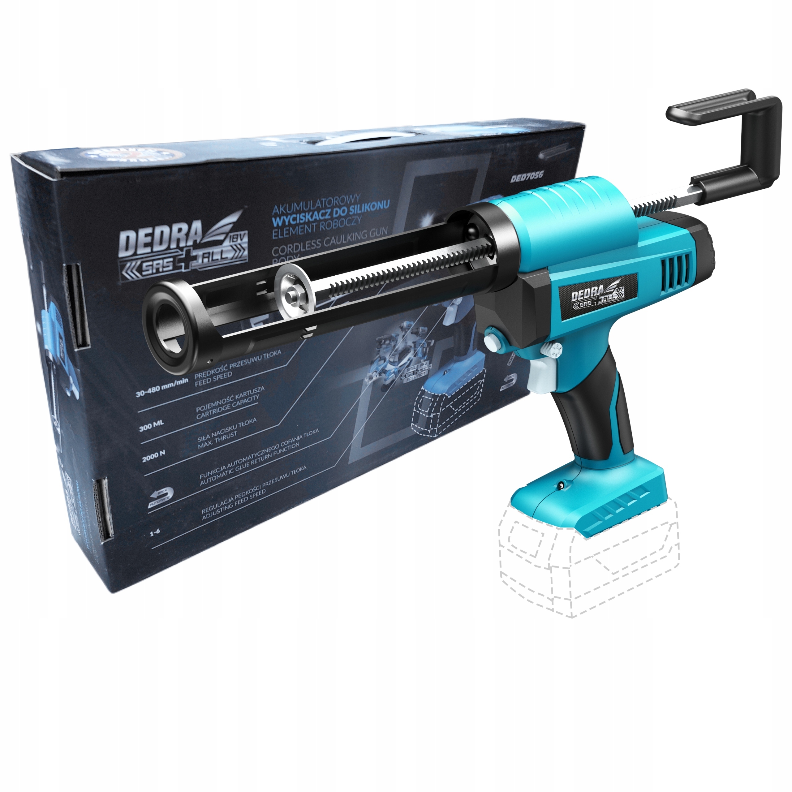 Акумуляторный соковыжималка DED7056 предназначена для выдавливания силикона, клея или герметиков в картриджи емкостью до 300 мл.
