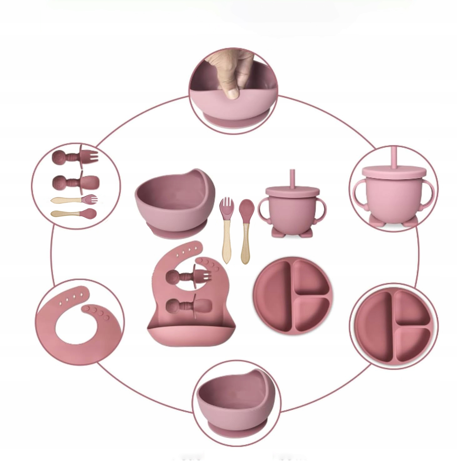СИЛИКОНОВАЯ ПОСУДА ДЛЯ ДЕТЕЙ, НАБОР ИЗ 8 ЭЛЕМЕНТОВ С БЕЗОПАСНЫМИ ПРИСОСАМИ