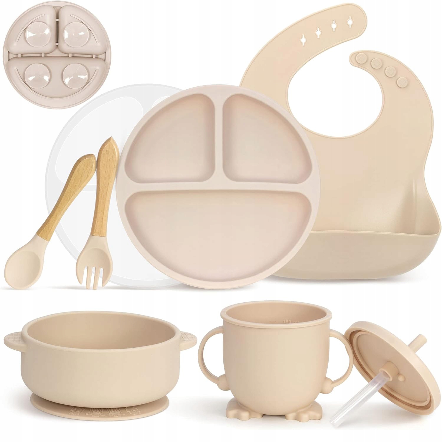 - он содержит силиконовые вилки, силиконовые ложки, силиконовые сосуды для детей с крышками, силиконовыми слюнями, силиконовыми чашами и чашками питья силикона. Каждый элемент изготовлен из высококачественного силикона, предназначенного для контакта с продуктами питания и не содержит BPA.