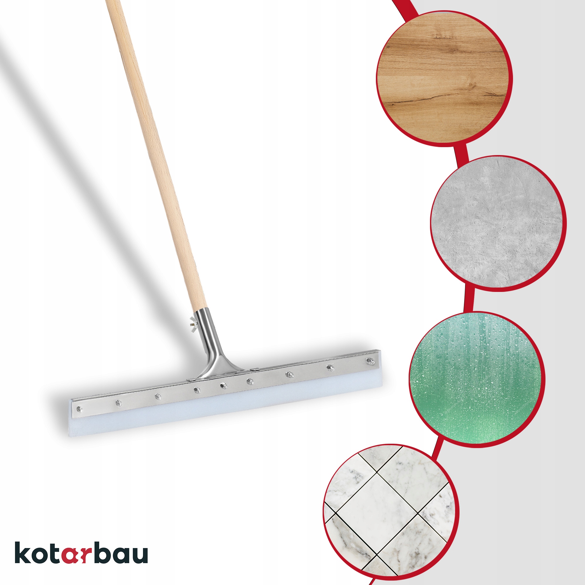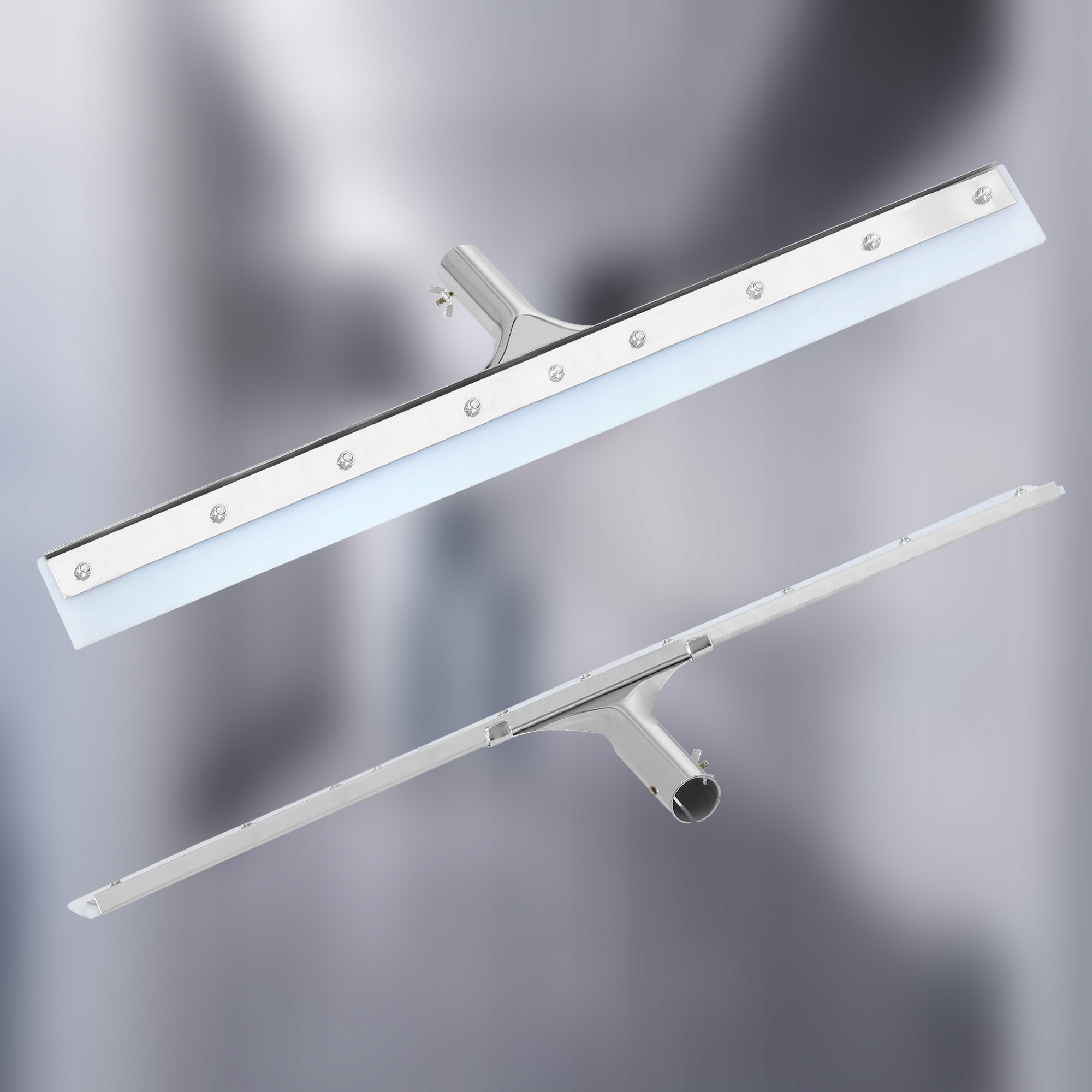Скребок предназначен для удаления воды с больших поверхностей. Он состоит из планки и металлической ручки, к которой прикреплен специальный силиконовый чехол. Его используют в местах с большим количеством воды, например, на автомойках, промышленных предприятиях, балконах, террасах или при уборке тающего снега. Инструмент обеспечивает комфорт даже при длительной работе.
