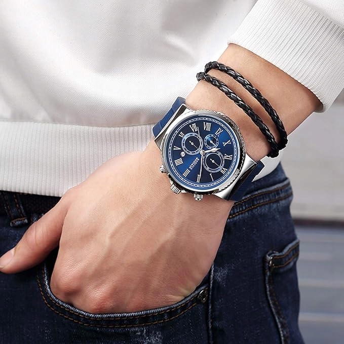 Эти спортивные мужские часы с синим силиконовым ремешком выглядят классическими и бесплатными благодаря чистым линиям. Эта серия часов была создана для идеального компаньона для мужчин, которые ищут моду, объединяющую качество.