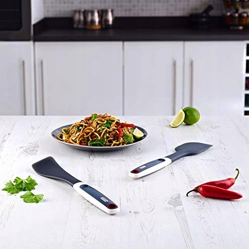 Силиконовая лопатка от швейцарского бренда Zyliss имеет уникальную форму, благодаря которой ее легче переворачивать и вынимать продукты из сковороды, кастрюли или вока.