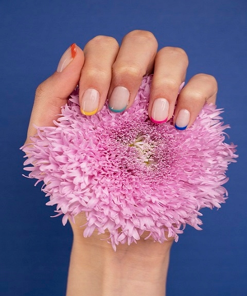 А может быть, французская стрижка с разноцветными кончиками – красными, желтыми, розовыми, синими, оранжевыми? Французский не обязательно должен быть классическим! Стоит немного пофантазировать и раскрасить каждый кончик разным цветом. Такой маникюр обязательно привлечет внимание окружающих!