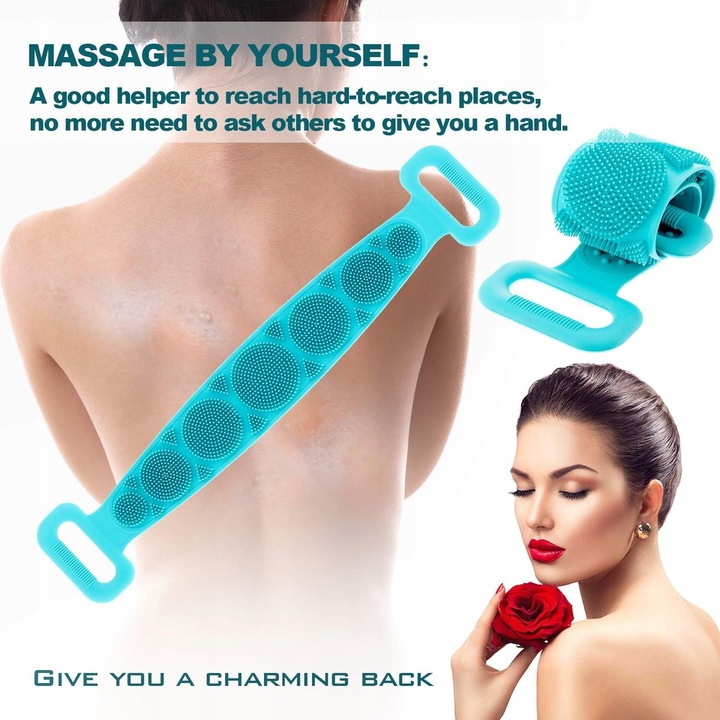 Этот ремень обеспечивает не только тщательную промывку, но и глубокий массаж. На одной стороне пояса есть ребристое массаж, стимулирующие циркуляцию и расслабляющие мышцы, а также другие мягкие щетинки, которые мягко, но эффективно очищают кожу. Из -за комфорта использования и массажных эффектов он неоднократно подчеркивался в обзорах. Используйте и хранит и идеально, чтобы даже отправиться в путешествие