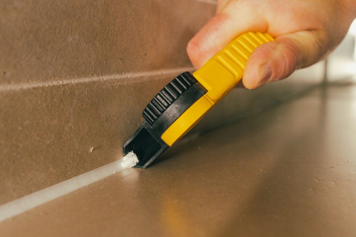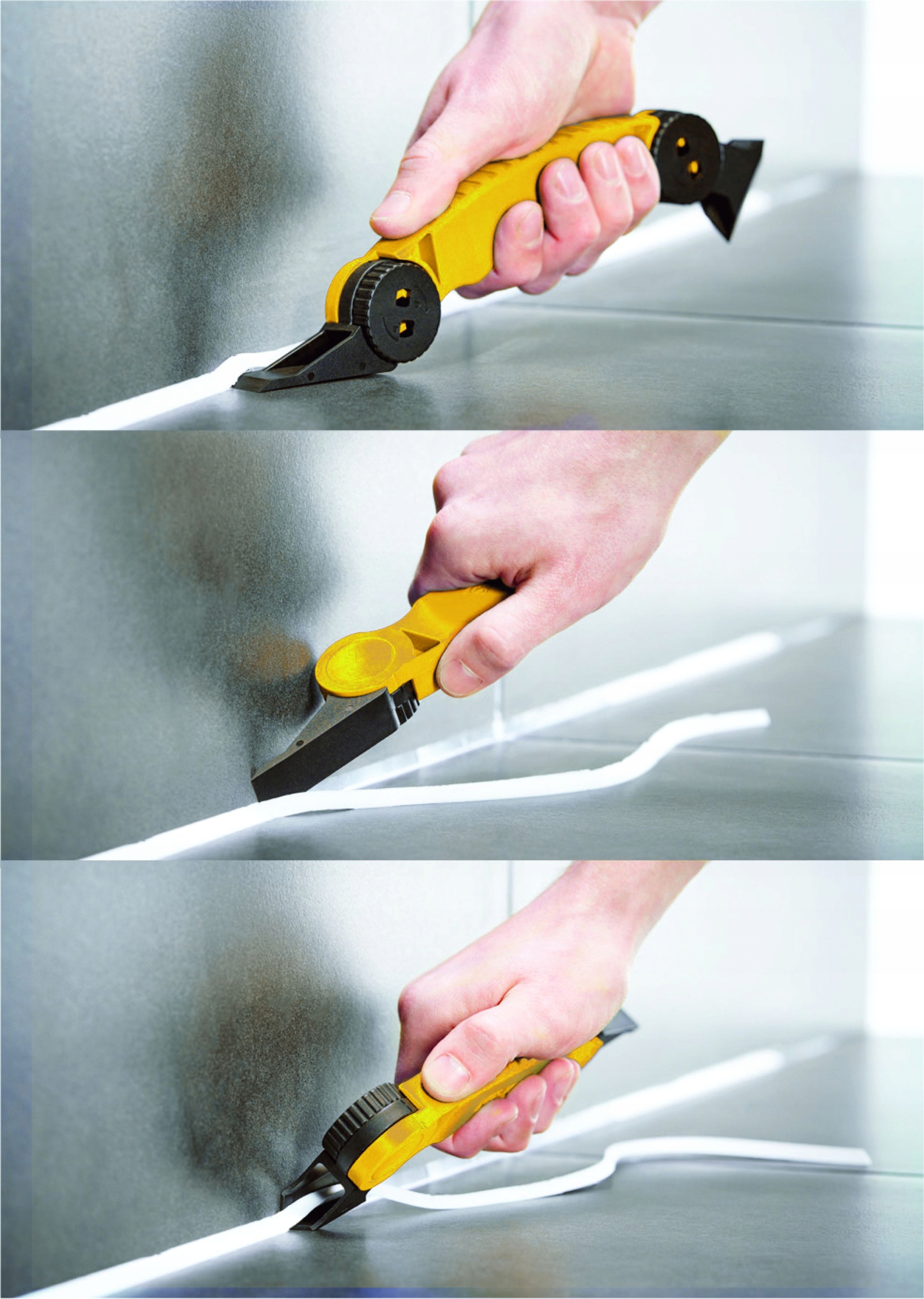 Эргономичный двусторонний инструмент для быстрого и тщательного удаления силикона с керамической плитки, умывальников и раковин.