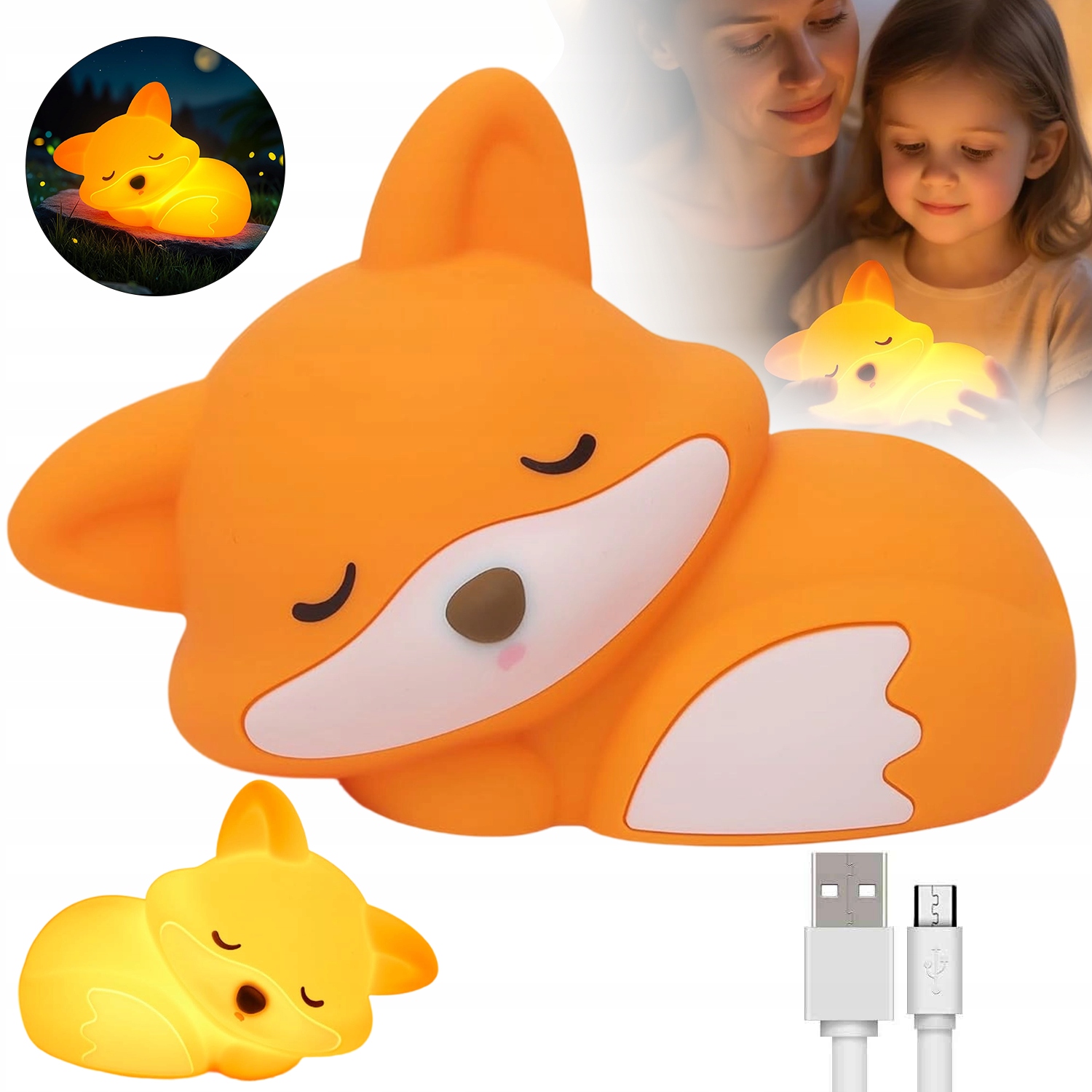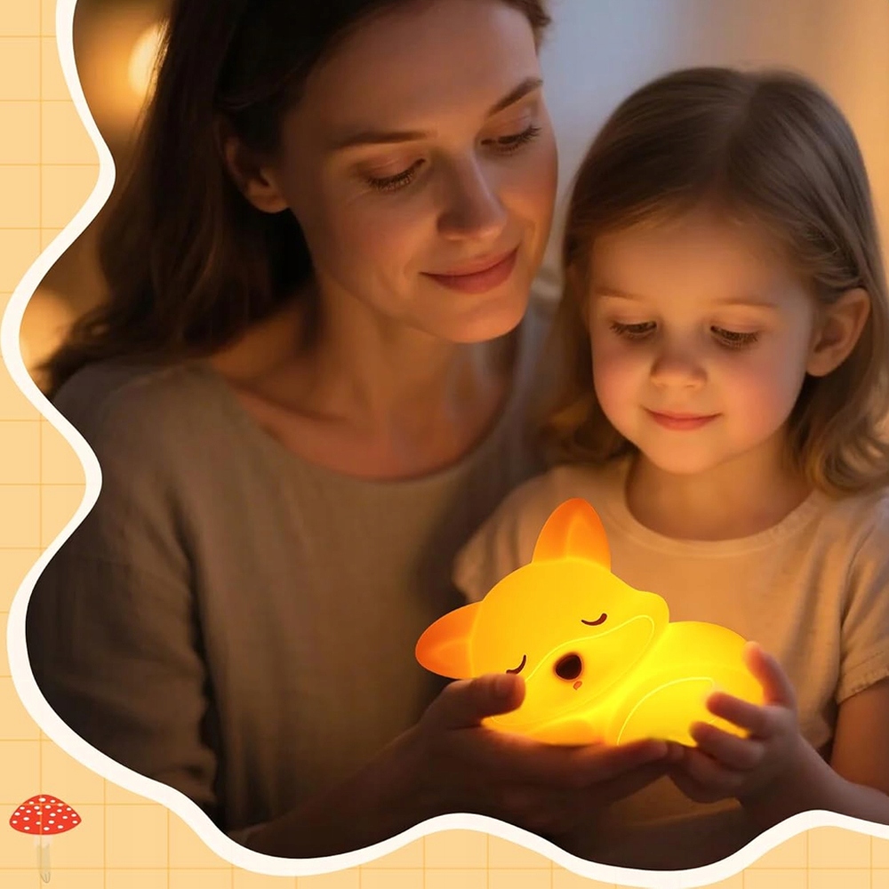 СИЛИКОНОВЫЙ СВЕТОДИОДНЫЙ НОЧНИК, ОРАНЖЕВАЯ ЛИСА, ТАЙМЕР 2 УРОВНЯ ЯРКОСТИ
