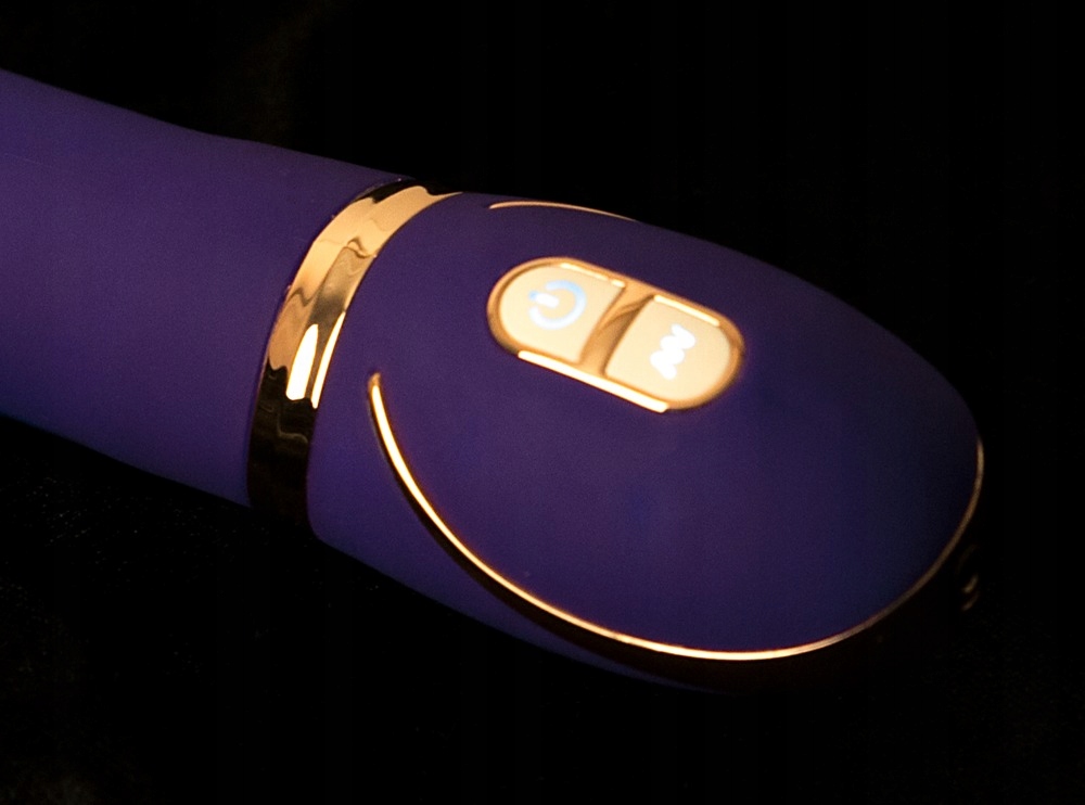 Этот королевский фиолетовый вибратор впечатляет не только своим благородным внешним видом с золотыми декоративными элементами, но и своими возможностями.