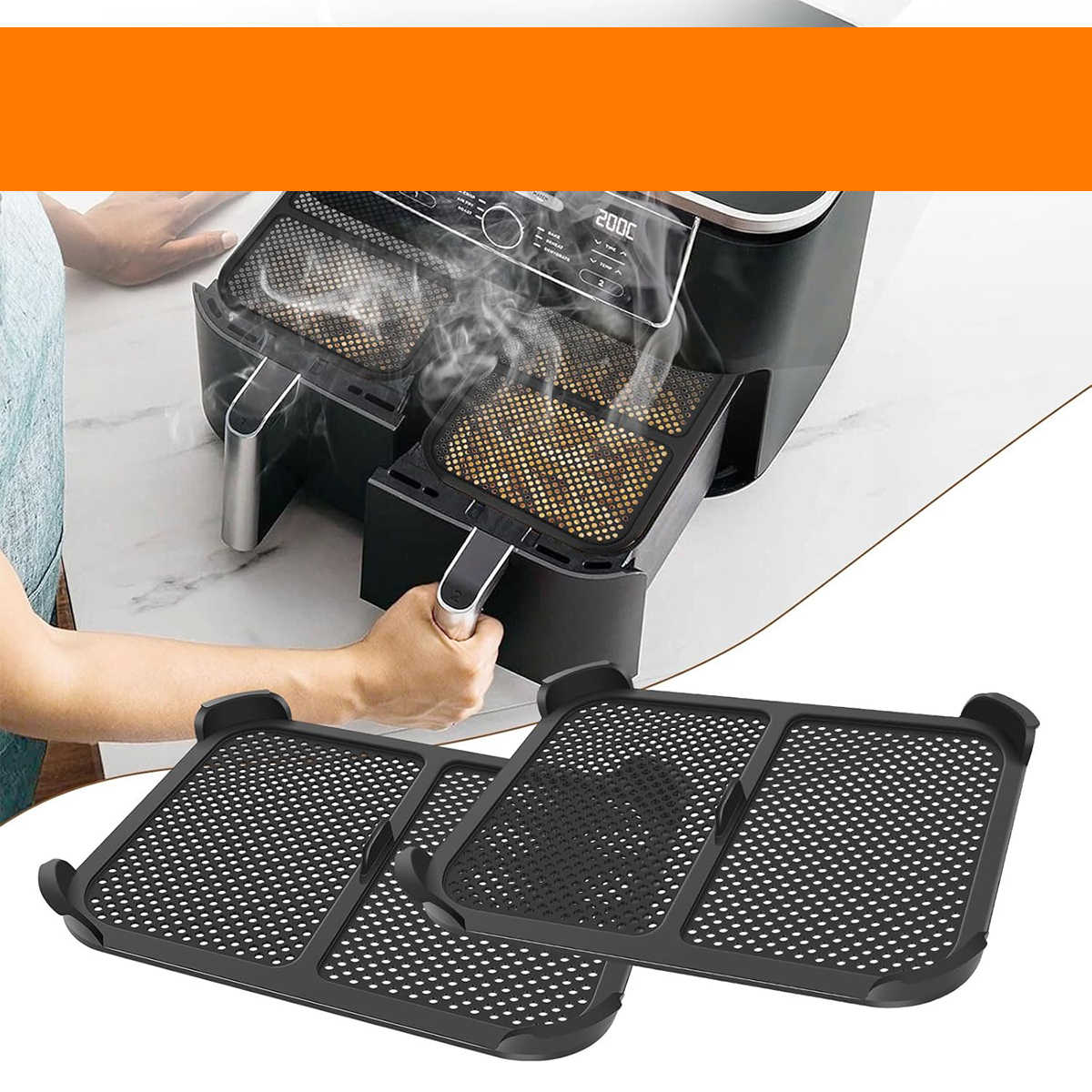 - Высококачественный материал: брызговик изготовлен из пищевого, нетоксичного силикона и выдерживает температуру до 240 °C. Вы получите 2 брызговика для вашей аэрофритюрницы Ninja, размеры изделия ок. Размерами 21 x 16 x 1,5 см, которые долговечны благодаря гладкой, устойчивой к ржавчине поверхности.