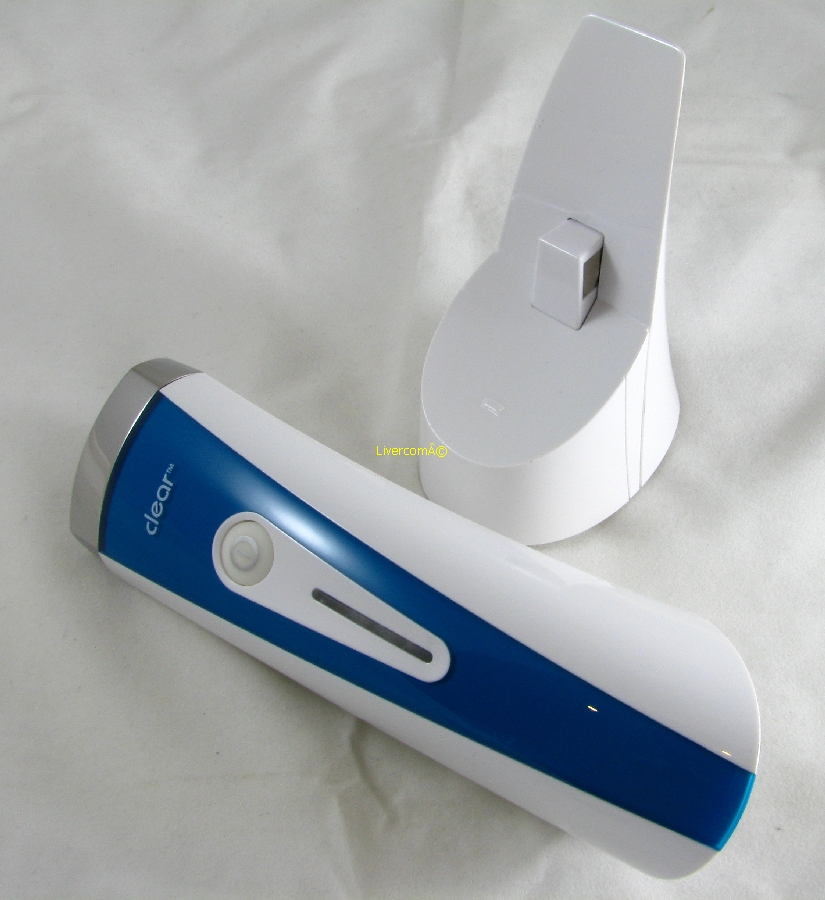 Аппликатор Silk`n Clear представляет собой ручное устройство, на конце которого имеется обрабатывающая поверхность, переключатели ВКЛ/ВЫКЛ и индикаторная панель. Док-станция Silk`n Clear используется для зарядки аккумулятора аппликатора.