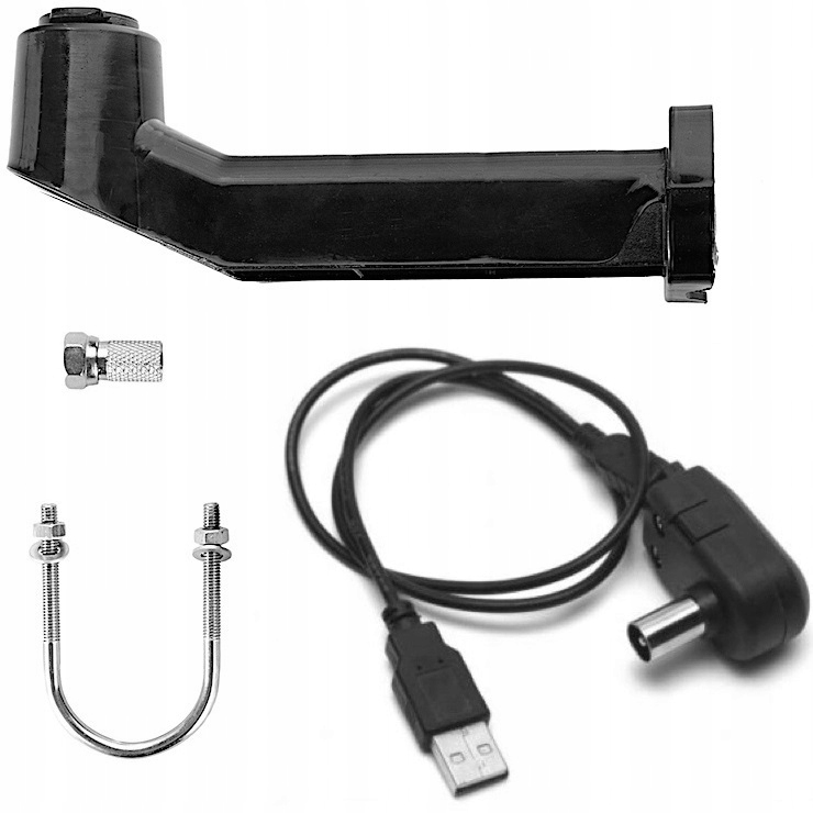 - В комплекте: антенна, кабель питания USB, F-разъем, держатель (болт) для крепления. антенна