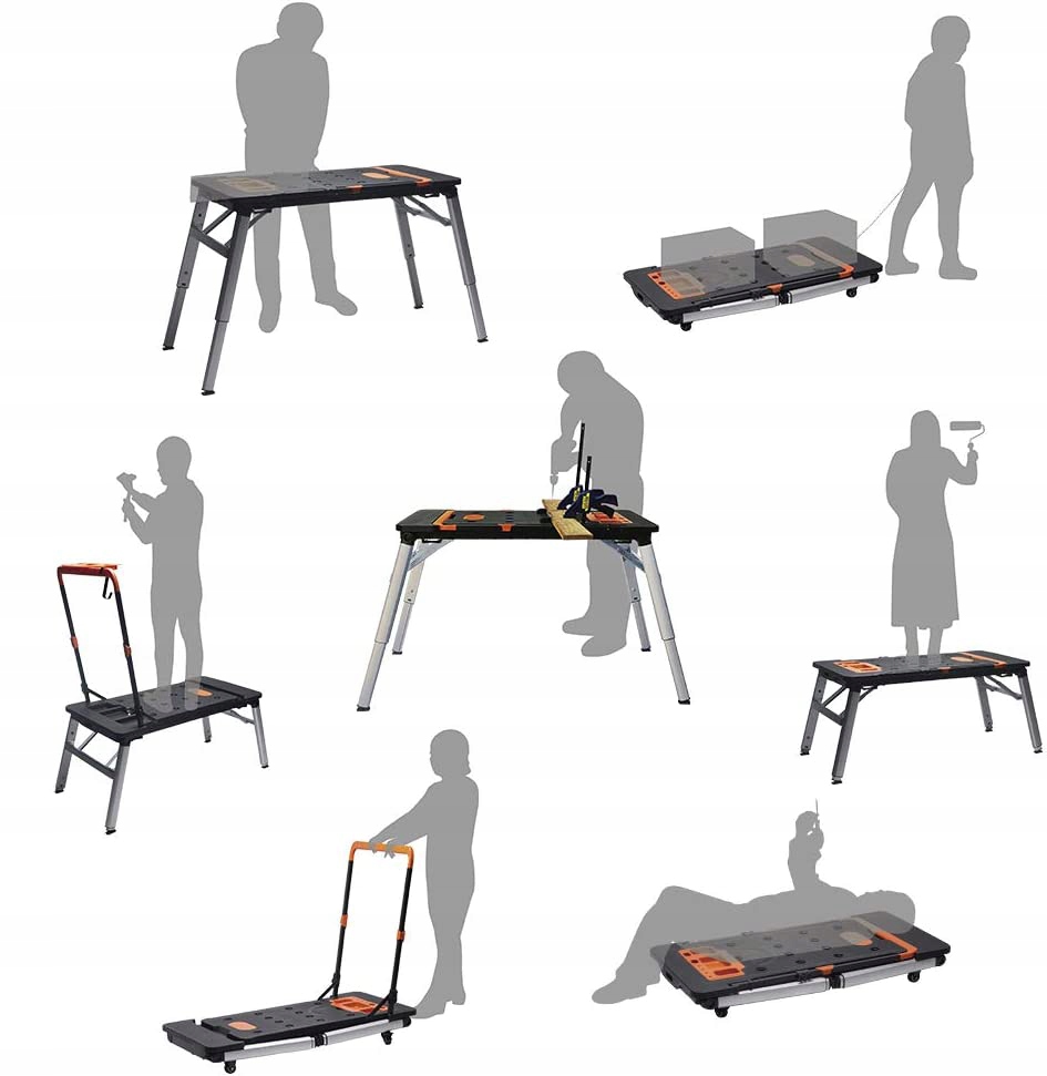 имеет большую рабочую поверхность благодаря которой пил и бурение проще. На стороне есть встроенная розетка. Его можно использовать в качестве стабильных лесов или рабочей платформы. Набор включает в себя колеса благодаря тому, что таблица превращается в коляску. Он также имеет функцию семинара для использования в автомобиле, ремонтных семинарах, автомобильных услуг, а также среди DIY. Он может быть сложен в форме легкого -в хранилище и транспортном чемодане.