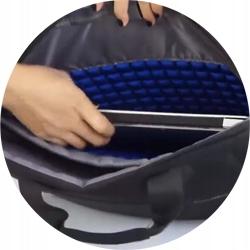 Сумка имеет камеру для ноутбуков, полностью выровненная со специальным материалом с вкладками. Благодаря этому решению, ноутбук защищен со всех сторон, и даже в случае, когда сумка сбросит или ударил его чем -то, компьютер будет в безопасности. Камера ноутбука прикреплена липучкой
