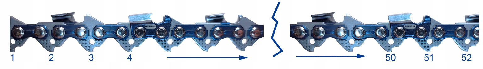 - Последние цифры в символе режущих цепочек означают его длину. Например: 052e / 052x | 056e / 056x | 064e / 064x указывают цепи с длиной 52, 56 или 64 направляющих ячеек.