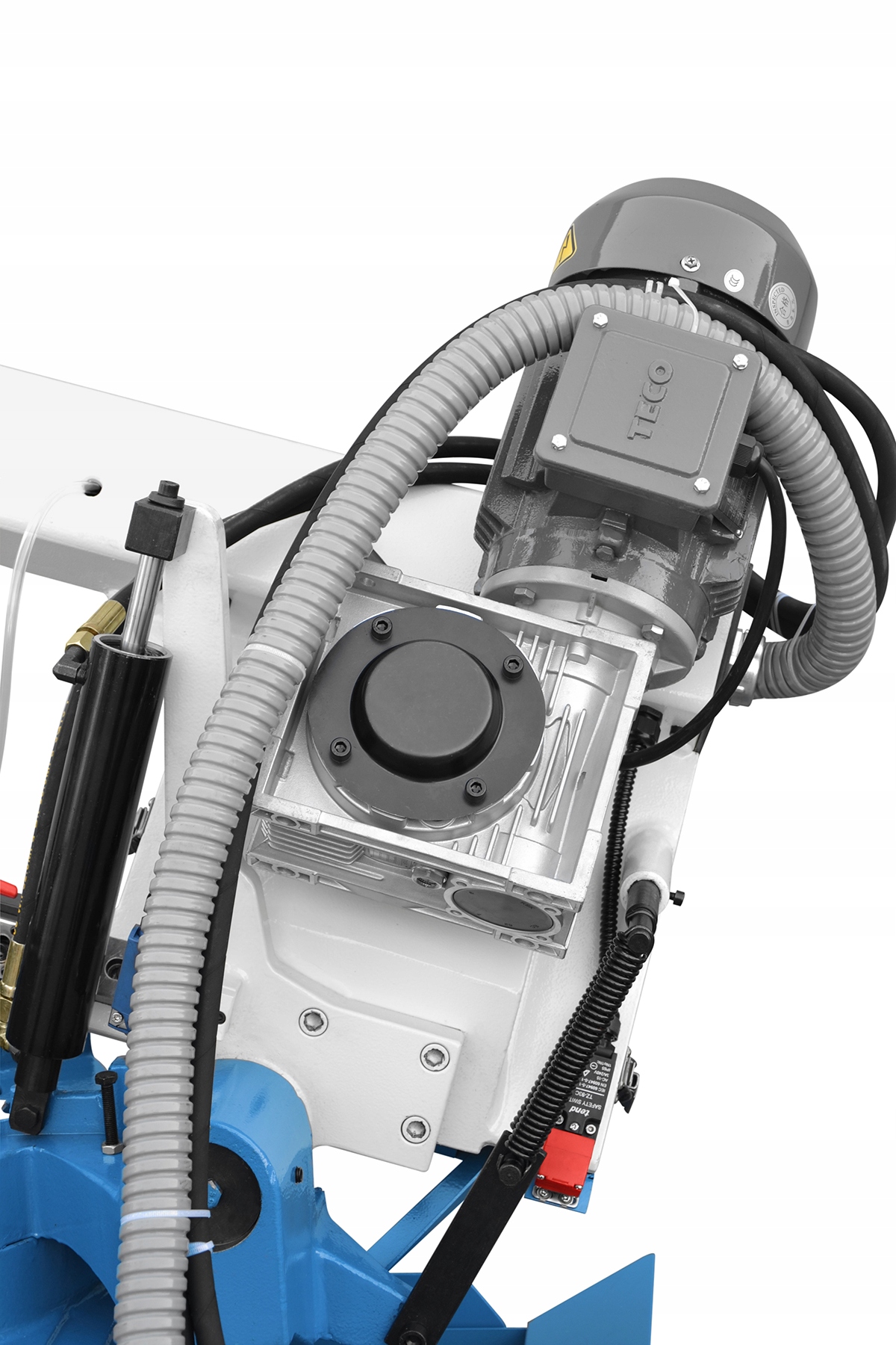 машинный привод передается с помощью улитки, заполненной шестерцовым маслом. Машина имеет трехфазный двигатель с двойной обмоткой и две скорости резания. У машины есть две скорости резки ленты 35 и 70 м/мин . Строительство: ARM, VICE и ROTED TABLE - чугунные отливки. Основание машины представляет собой жесткий кубоид из стальных листов, внутри которого есть контейнер охлаждающего жидкости с насосом охлаждающей жидкости. У машины есть ограниченный переключатель, останавливающий машину после процесса резки, аварийный переключатель, так что наз. «Гриб безопасности», серия микросхем от машины, когда, например, мы открываем крышку трансмиссии ремня или крышку резки
