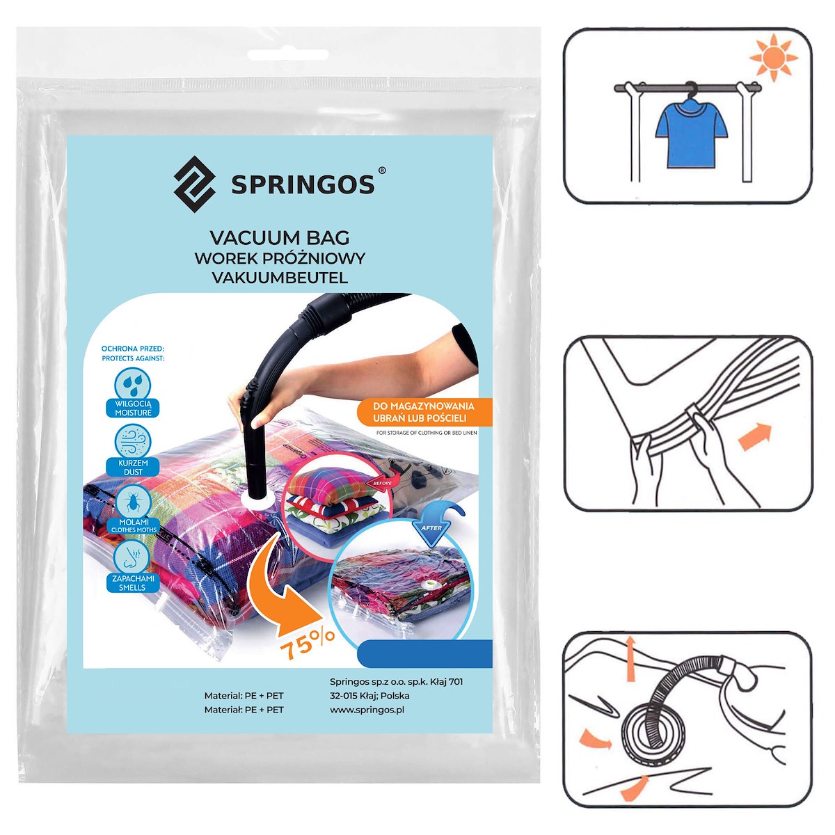 Дома важен каждый сэкономленный сантиметр пространства, так же и в путешествии Вакуумные пакеты Springos — отличное решение, благодаря которому вы можете сэкономить 75 % пространства, высасывая из них воздух. Это чрезвычайно полезная вещь в каждом доме.