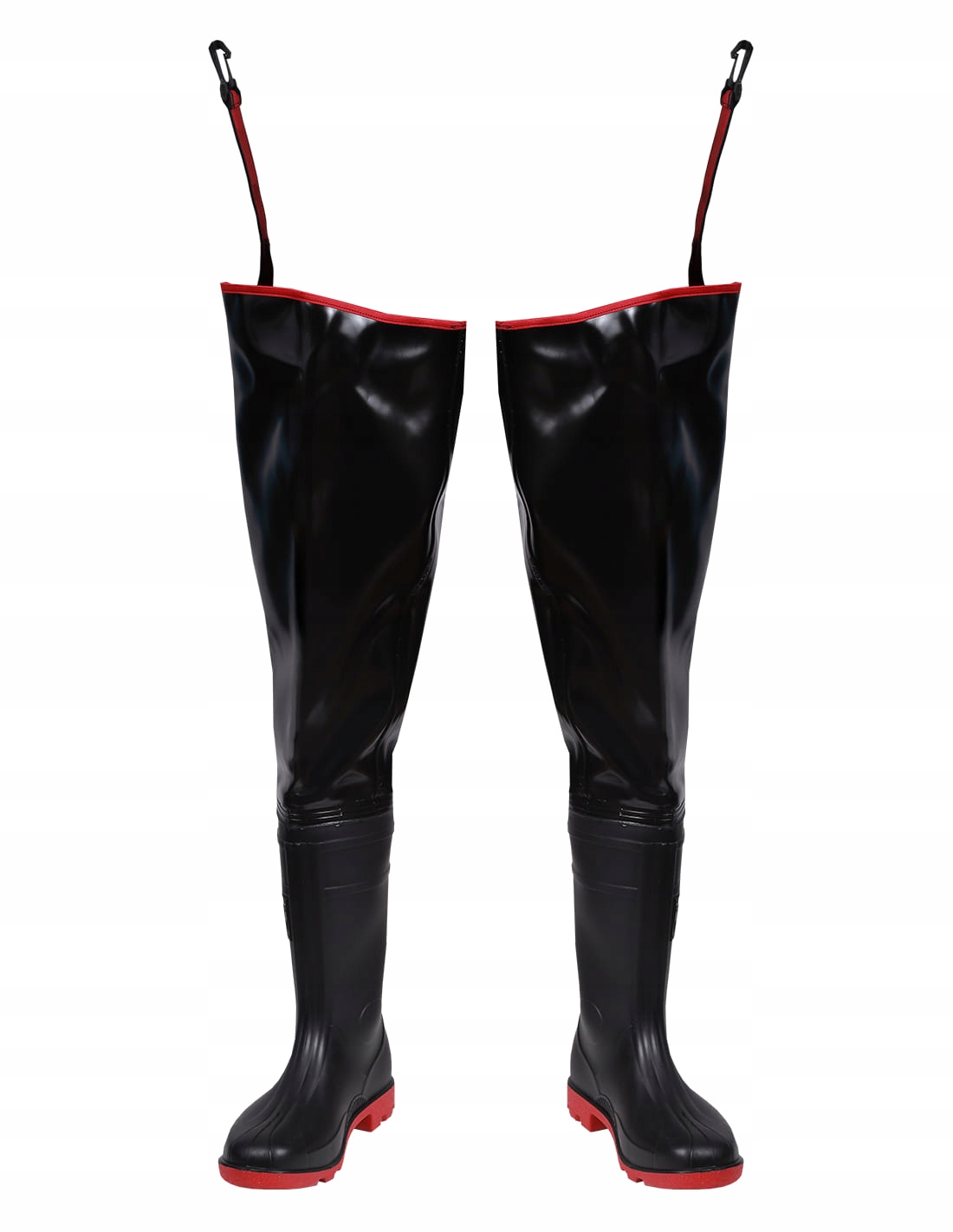Водонепроницаемые вейдерсы с высокой устойчивостью к механическим повреждениям, с несъемными приваренными бахилами, защищающими от скольжения на скользкой поверхности. У него есть ремни для крепления к поясу.