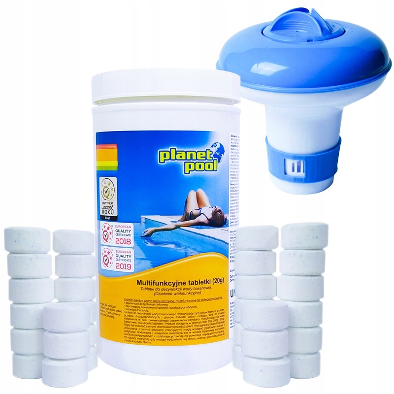 Набор для дезинфекции воды в бассейне: таблетки хлора, многофункциональные с формулой «Все в одном» + специальный дозатор - дозатор на 20 г. планшеты (маленькие)