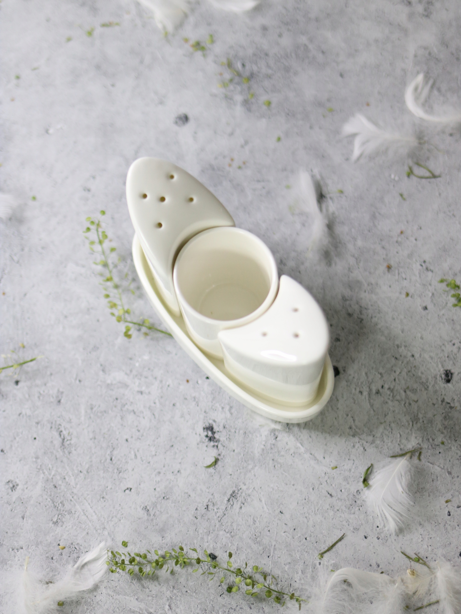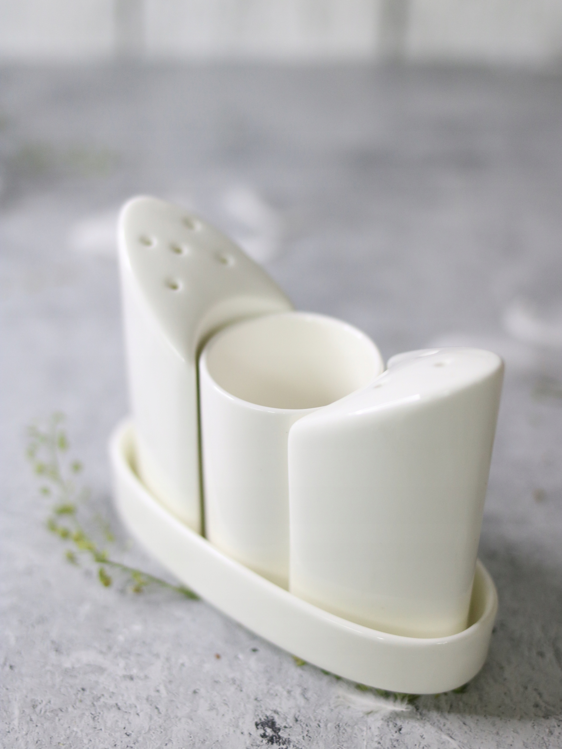Набор фарфоровый:солонка, перечница и контейнер для зубочисток на специальной подставке - стильный и лаконичный набор на любой стол.