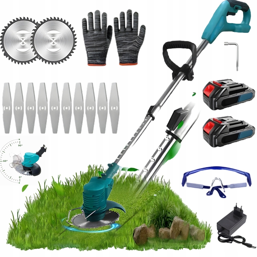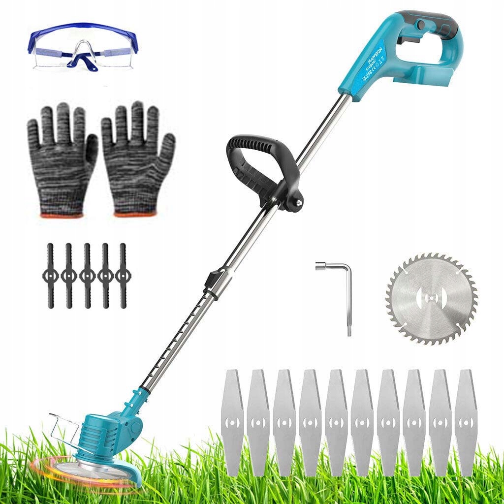 Беспроводная травяная косилка с 3 типами лезвий (ширина резания): пластиковые лезвия подходят для почиски мягкой травы и других легких объектов, лезвий из нержавеющей стали для резки толстых сорняков и небольших кустарников, щитовых дисковых кустарников и ветвей. (Примечание: не используйте пластиковые лезвия для скаски толстых ветвей кустарников)