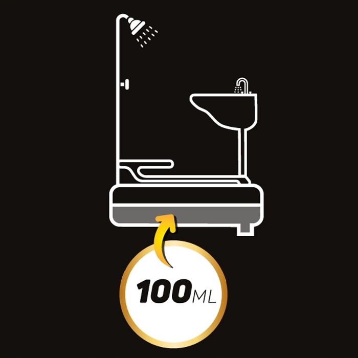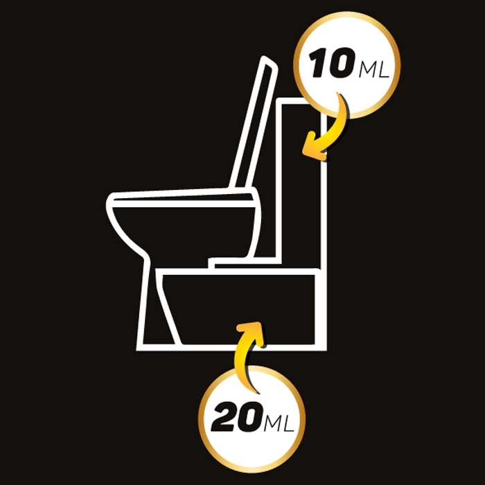 - Основной бак - налейте 20 мл CAMPER TOILET SUPER CONCENTRATE на каждые 10 л емкости бака для отходов, затем залейте 1-2 л воды,