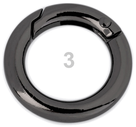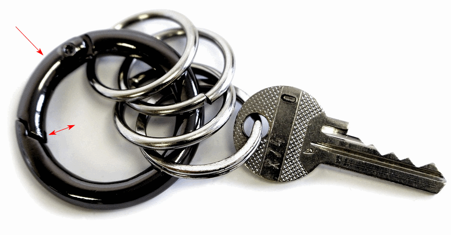 Оригинальный карабин в форме кольца — элегантное решение, позволяющее хранить все ключи вместе. С его помощью также можно прикрепить к сумке или сумочке различные подвески.