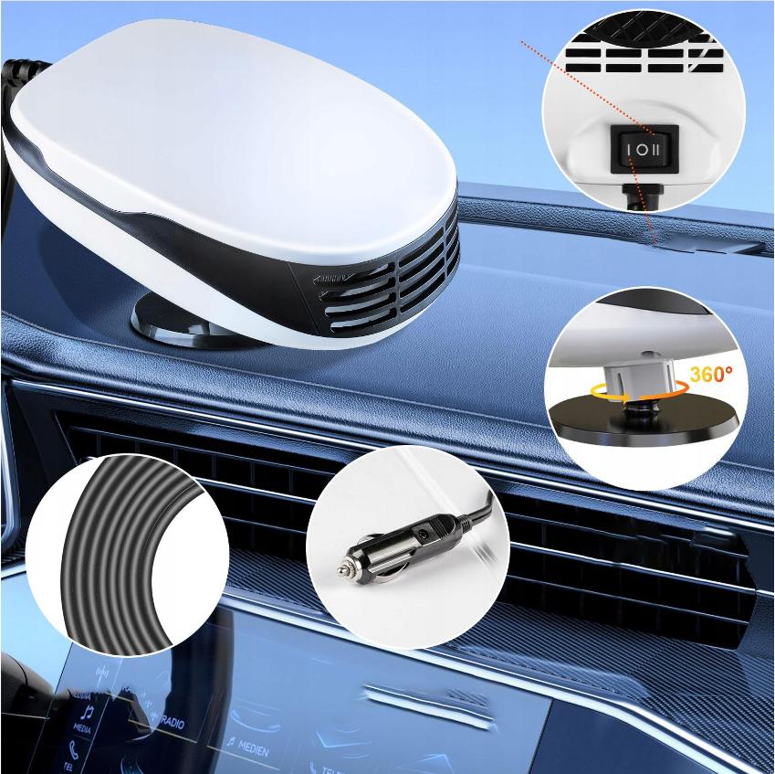 【2 в 1】 Функция отопления и нагрева - измените переключатель, и горячий воздух или прохладный вентилятор выйдут немедленно. Нагреватель идеально подходит для размораживания или испарения ветрового стекла и ветрового стекла. Его также можно использовать в качестве вентилятора только для охлаждения летом.
