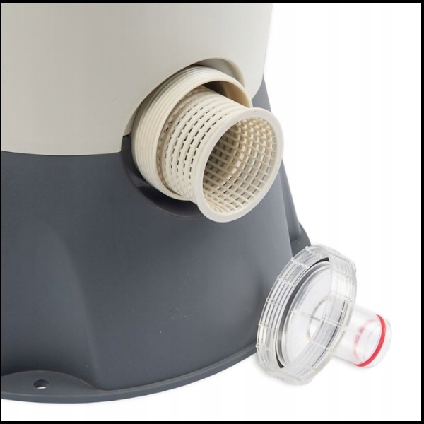 Песочный контейнер, точно так же, как весь насос был изготовлен из пластика, устойчивой к ржавчине и химическим веществам, используемым для обработки и очистки воды в бассейне.