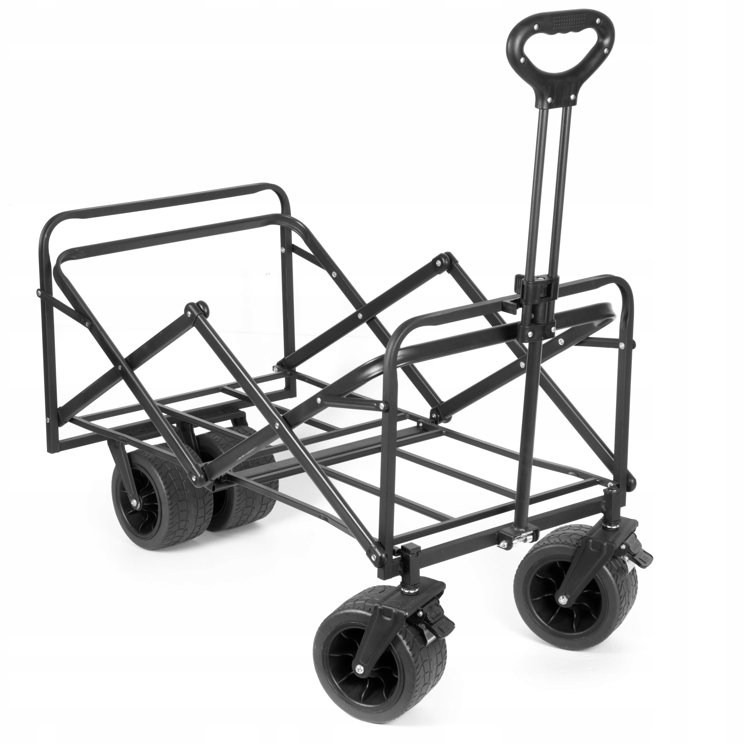 Продукт изготовлен из высококачественных материалов, благодаря которому он выдерживает нагрузку до 110 кг. Он имеет прочную металлическую структуру и оболочку из прочного и водонепроницаемого пластика. Удобная ручка позволяет бесплатно транспортировать тележку, включая нагрузку, заполненную нагрузкой. Сплошные колеса вращаются на 360⁰, что обеспечивает плавное вождение, даже при значительной нагрузке. Колеса легко покрывают даже песчаные поверхности!