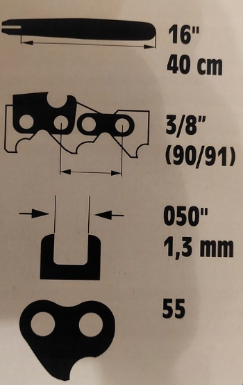 Очень прочный руководство 40 см 16 ", с ходом цепи 3/8" и шириной канавки 1,3 мм .
