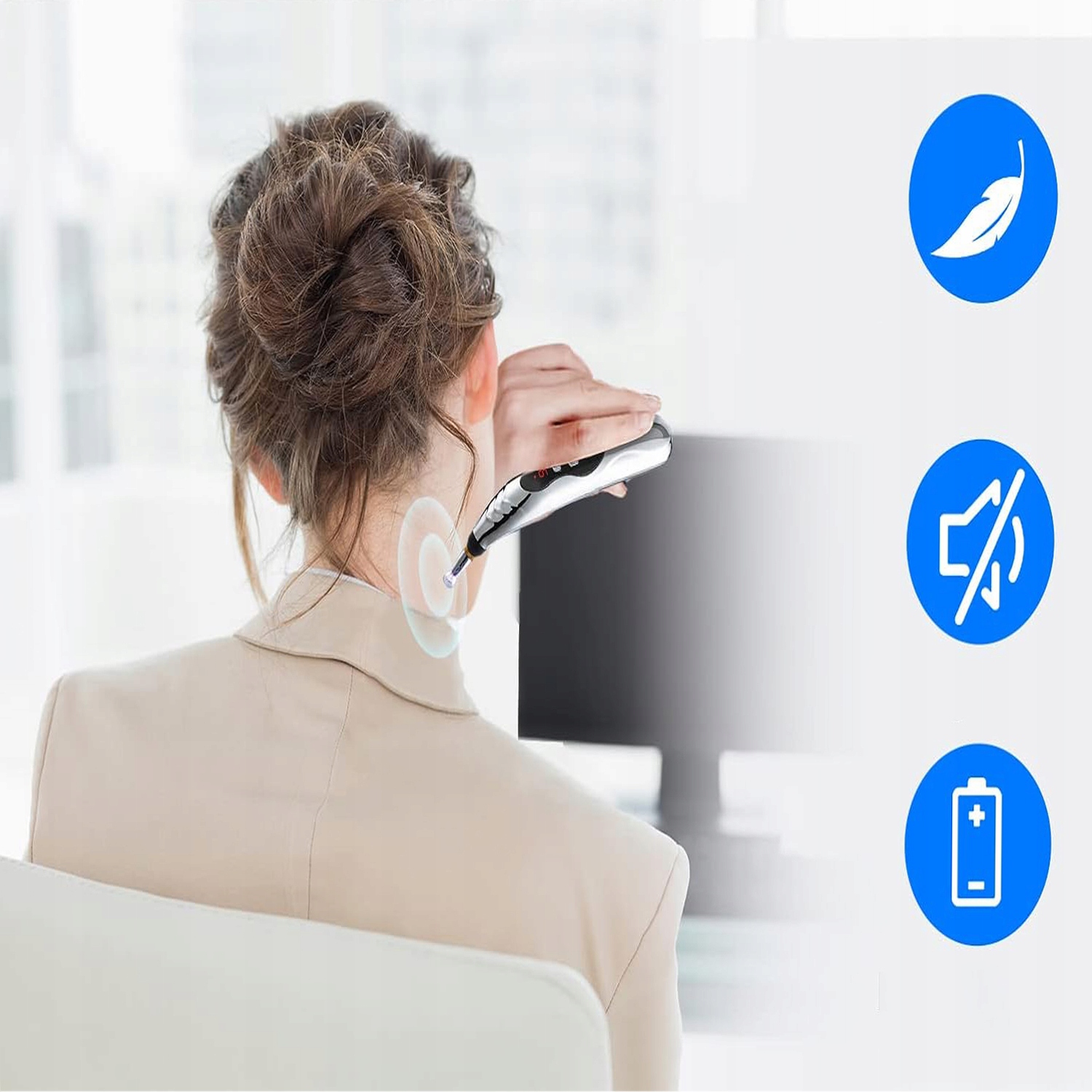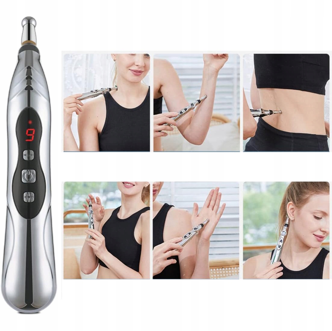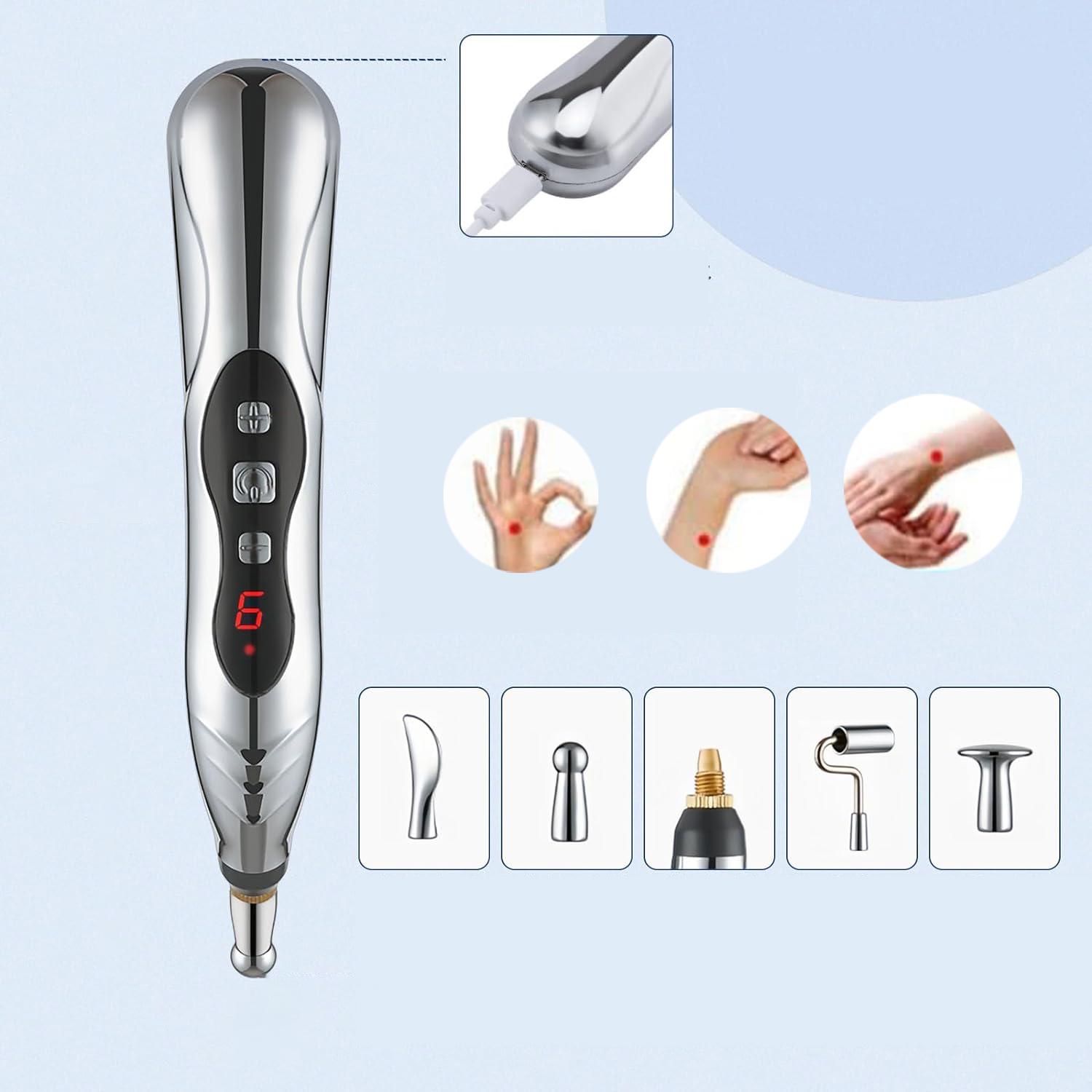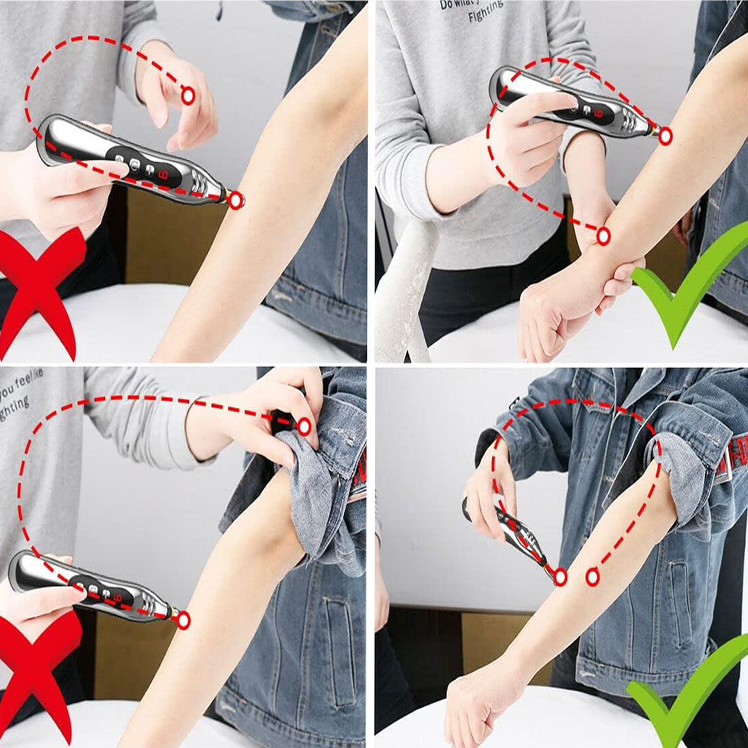 - ✅ Массаж может быть выполнен без прокалывания кожи, просто нажмите массажную головку в выбранном положении, чтобы стимулировать меридианы и точки иглоукалывания.