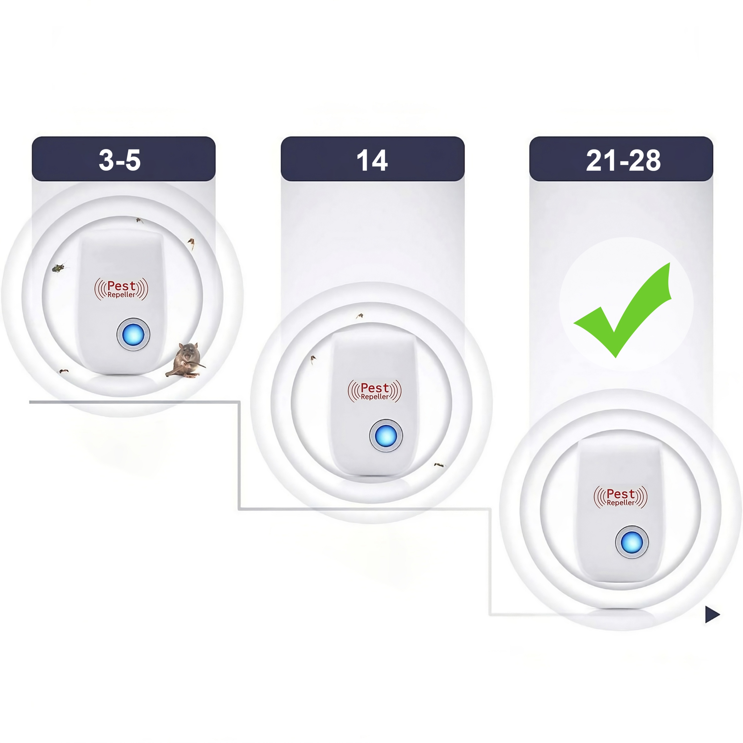 Ультразвуковой репуллер эффективен в областях с диапазоном до 80-120 квадратных футов b>. Вы можете поместить это в любую комнату или где бы вы ни захотите. Для получения лучших результатов мы рекомендуем установить блок 1 для каждой комнаты или несколько единиц на большие площади.